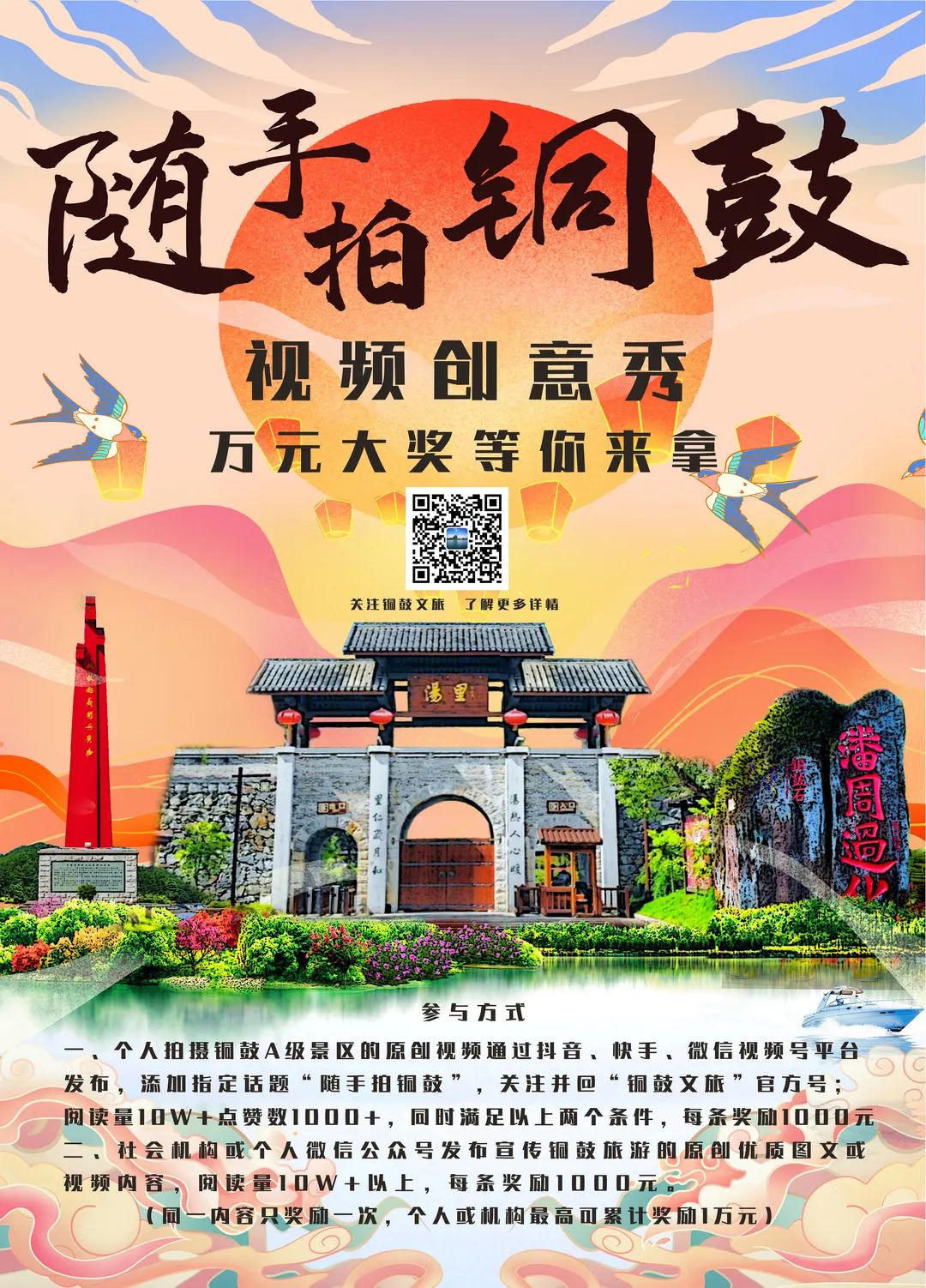關(guān)注“銅鼓文旅”公眾號,并在文章底部點贊、點亮“在看”,同時將此文鏈接轉(zhuǎn)發(fā)朋友圈并集滿99個贊,可享受價值268元湯里景區(qū)套票一張,還在等什么,趕快行動吧!(僅限50名)