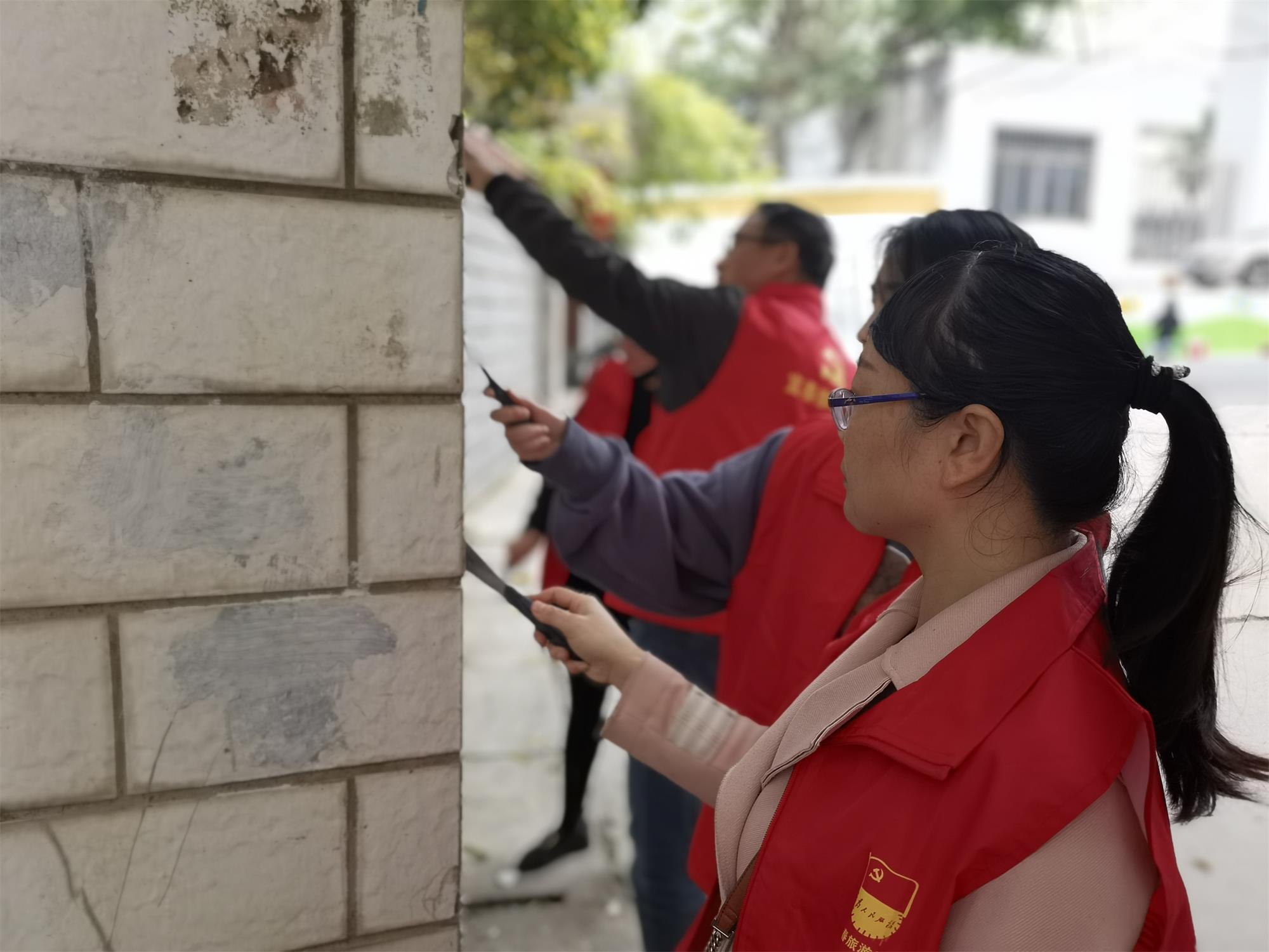 活動(dòng)第一階段,公司與社區(qū)黨員集中學(xué)習(xí)市委書記于秀明同志在全市第五次黨代會上的講話精神,交流思想、增進(jìn)了解,推動(dòng)國企和社區(qū)基層黨建工作的互促發(fā)展。學(xué)習(xí)交流結(jié)束后,與會黨員共赴黃頗社區(qū)十中校區(qū)附近的老舊小區(qū),對陳舊斑駁的小區(qū)過道、墻體進(jìn)行刷白維護(hù),清理墻體和樓道“牛皮癬”。